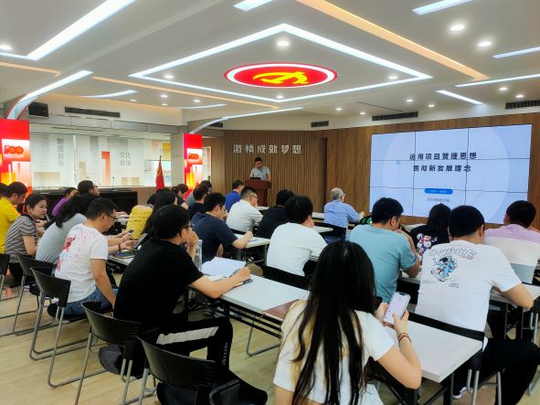 黨課內(nèi)容主要圍繞項目管理在科學(xué)層面和哲學(xué)層面的理解,新發(fā)展理念的內(nèi)容,以及如何運用項目管理思想來貫徹新發(fā)展理念來闡述的。吳家強(qiáng)指出項目科學(xué)層面包括項目的相關(guān)概念、組織影響、項目生命周期、項目管理過程和知識領(lǐng)域,哲學(xué)層面是從項目管理思想延伸至如何構(gòu)建企業(yè)的管理和發(fā)展。要從戰(zhàn)略、運營、人力資源的管理上,以及企業(yè)文化、數(shù)字化建設(shè)上做好工作去推動企業(yè)的發(fā)展。有效的項目管理思想能提升企業(yè)的管理效率,因此要運用好項目管理思想,以新發(fā)展理念引領(lǐng)企業(yè)的高質(zhì)量發(fā)展。